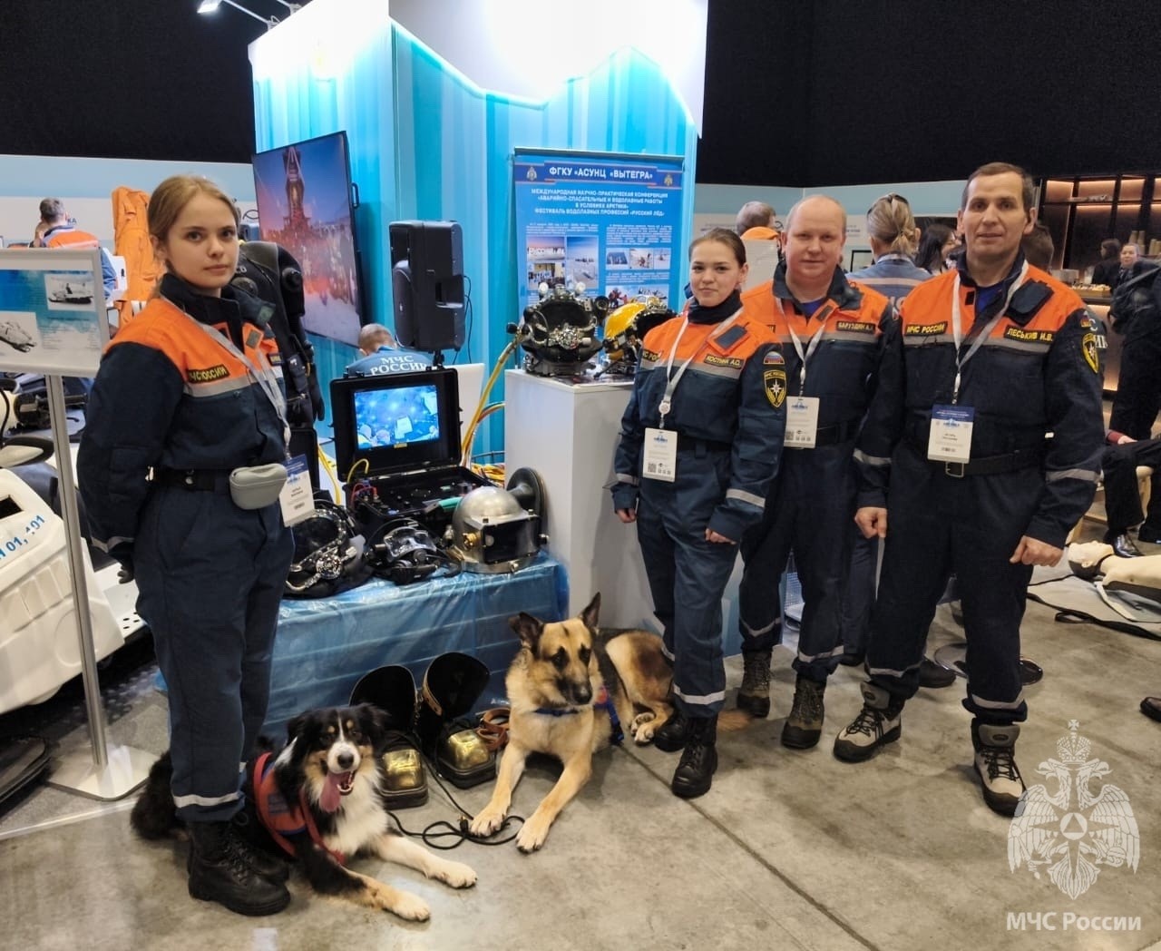 Сотрудники ФГКУ «АСУНЦ «Вытегра» начальник поисково-спасательной службы Александр Баруздин, начальник кинологического подразделения Александра Костина, спасатель 3 класса Игорь Леськив, спасатель-кинолог Дарья Вахнина провели мастер-класс по оказанию первой помощи и рассказали о технологиях проведения водолазных работ и о водолазном снаряжении, а также об особенностях работы кинологических расчетов.