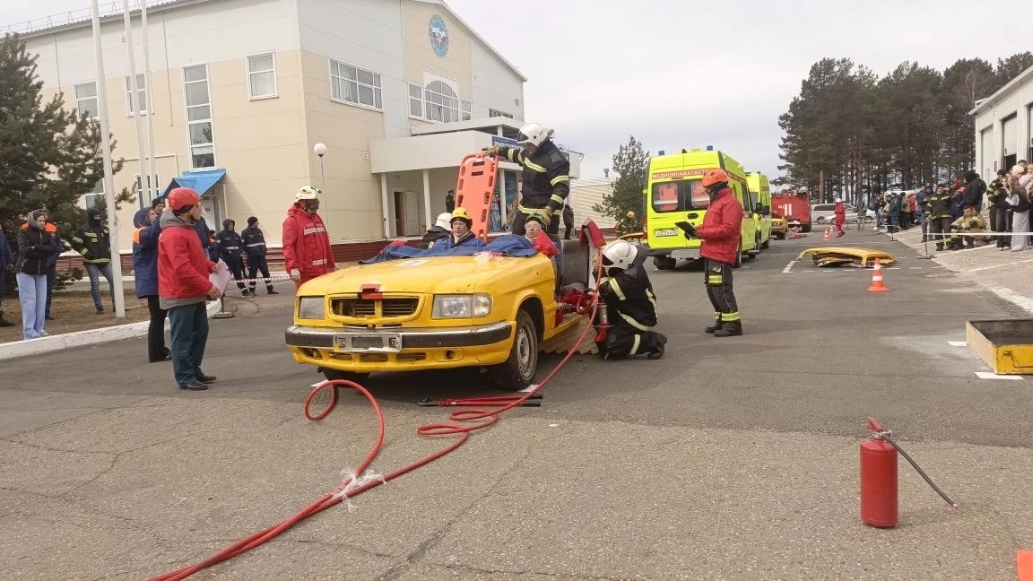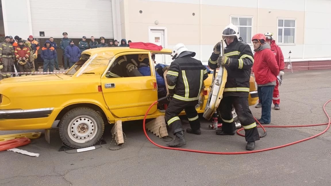 По легенде, в результате аварии два условных пострадавших оказались зажаты в автомобиле с последующим возгоранием.